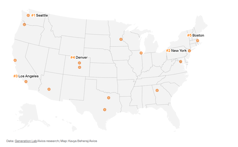 Denver và Boston cũng là những thành phố được nhiều người mong muốn và vẫn đứng sau Seattle, NY và LA.